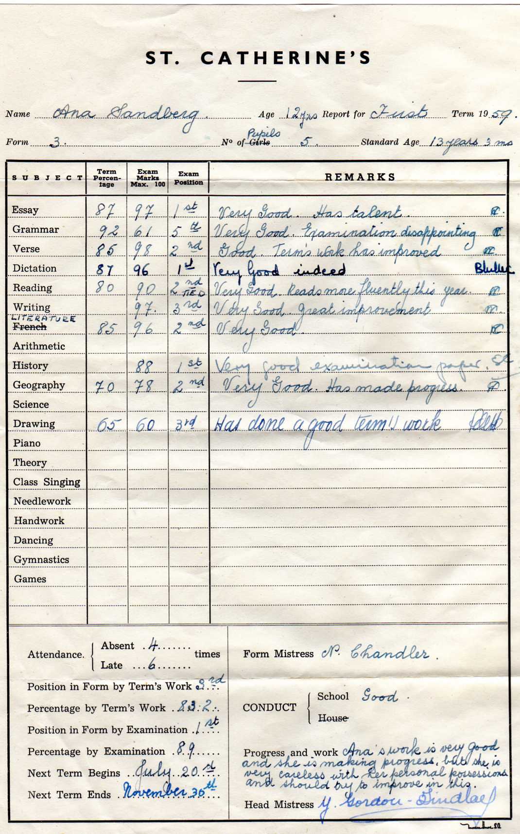 Report de Anita Sandberg, 1958 (2nd Term)